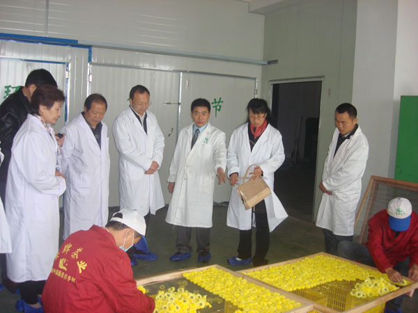 专家们察看皇菊生产加工