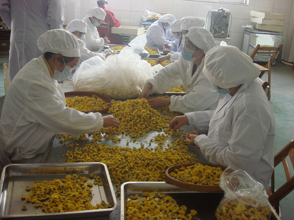 人工分级处理烘干好的皇菊