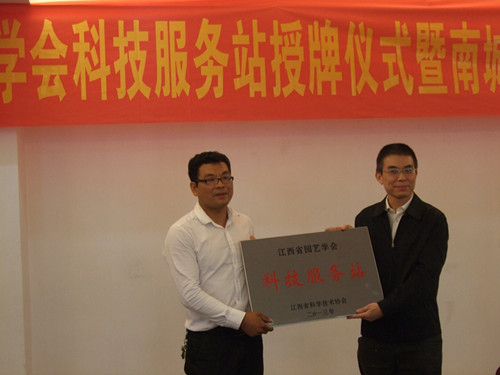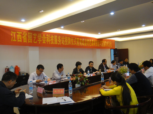 在授牌仪式上,梁纯平副主席指出:科技服务站是省科协于今年启动的一项重点工作,其目的是依托省科协所属各省级学会的智力优势和组织优势,学会与基层单位建立相对固定的、长期的联系,为基层单位提供产学研合作,新技术新成果推广、新产品开发、学术交流与研讨、技术培训、科技咨询等多种形式的科技服务。江西省园艺学会科技服务站是我省科协系统首个在企业建立的科技服务站,也是省科协深入开展党的群众路线活动,为基层办实事办好事,为基层提供科技服务的具体举措。